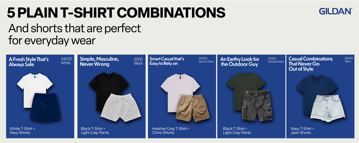 For most men, looking good doesn't have to be complicated. Sometimes, the simplest combo-a plain T-shirt and shorts-is the most reliable one. This effortless duo is perfect for tropical climates, hot days, or casual routines at home and outdoors. The key is to pick the right color, breathable fabric, and comfortable fit for your daily activities. Here are five easy T-shirt + shorts outfit ideas you can try, along with comfortable and stylish tee recommendations. 1. White T-Shirt + Navy Shorts = Fresh and Timeless A white tee is like a blank canvas-it goes with everything. Pair it with navy...